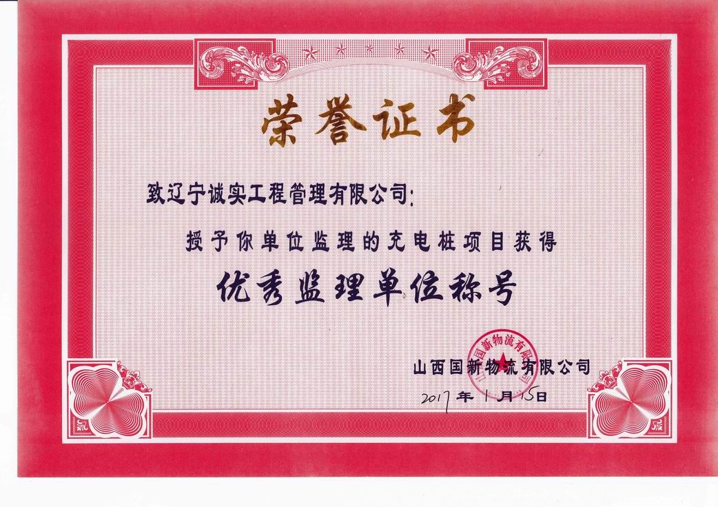 2017年山西国新物流有限公司优秀监理单位