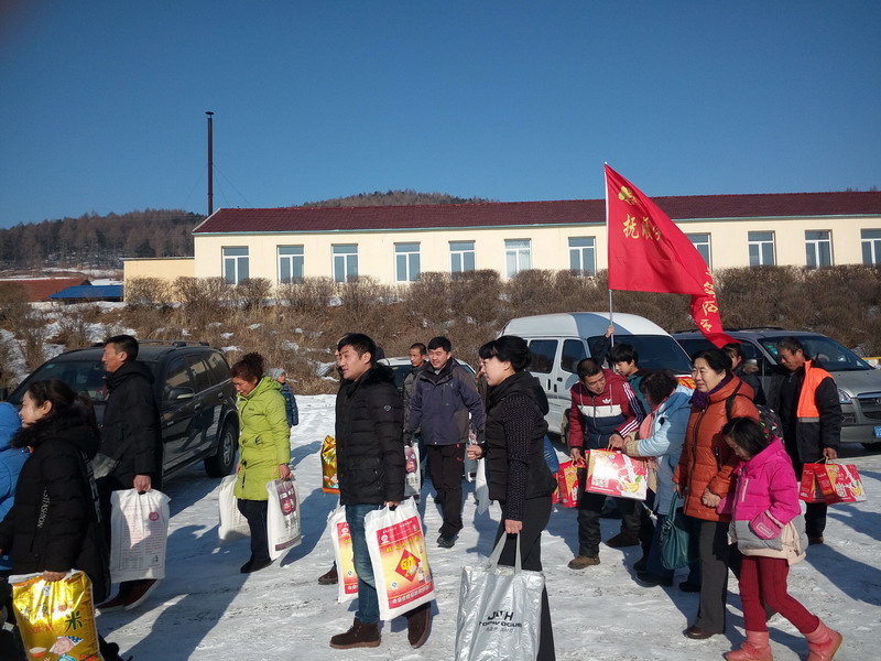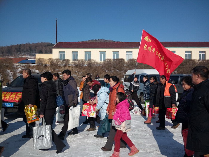 早上9点,满载着大米、白面、豆油等捐助物的7辆汽车从抚顺北站出发,一路向东前往清源甘井子小学。中午10点半,车队到达清源英额门镇,在当地学雷锋典型联合会分会刘先生的带领之下,车队于11点到达了清源甘井子小学。车辆刚刚驶入学校,迫不及待的学生以及学生家长们就都出门迎接了出来。找到各自帮扶对象的17位孩子见到了自己的资助人都激动得热泪盈眶。在甘井子小学高校长的带领下,大家把资助物品纷纷运到了学校食堂。在食堂把物品授予了这17位孩子,百姓雷锋们也为他们派发了新春红包,并与他们进行了亲切的交流,目的是鼓励这17位家庭困难的学生好好学习,勇敢的面对生活。