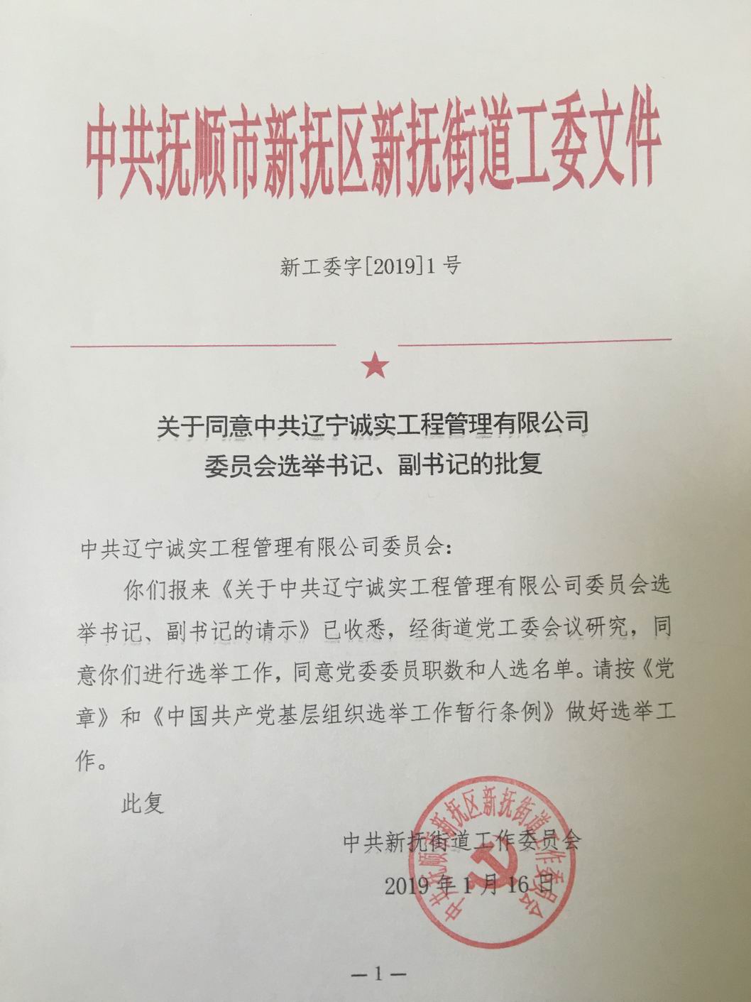 我公司第一届党委于2013年6月选举产生,2018年6月任期届满,根据党章有关规定于2018年2月7日进行换届选举产生了第二届党委,第二届党委由7名委员组成,其中设书记1名,副书记1名。2019年由于党委书记孙学良同志及副书记冯玉琢同志从我公司退休,委员数变为5人,根据党章有关规定应重新进行书记、副书记的选举。我公司于2019年1月10日申请换届,并于2019年1月16日得到批复。