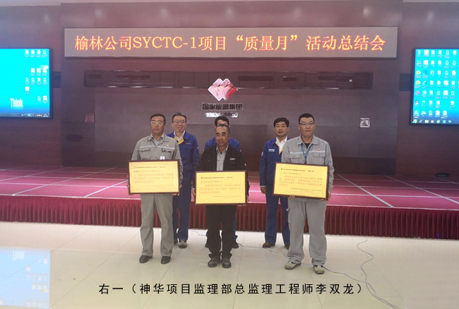 热烈庆祝我单位神华榆林项目监理部在总监理工程师李双龙同志的指导和项目监理部全体人员的辛勤努力下在2019年4月业主方神华榆林循环经济煤炭综合利用项目(一阶段工程)项目部举办的质量月评比中荣获“质量管理先进单位”荣誉称号。