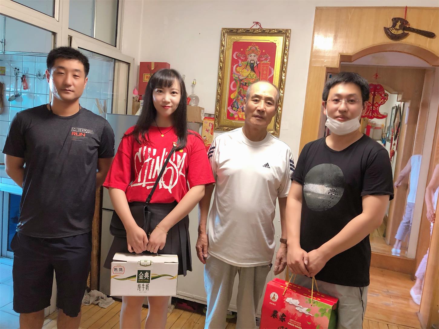 志愿者们走访看望社区的老党员们为他们送去了牛奶、鸡蛋等慰问品和节日的祝福。志愿者们让老党员们感到爱洒空巢屋,志愿者们的亲切问候感染着每一位老党员,老党员们眉开眼笑,激动地拉着志愿者们的手连声说着谢谢。老党员们对于我们的走访非常欢迎,并表示感谢党和人民政府的好政策,使他们能安度晚年;感谢国家培养的好青年,愿意陪伴老人们聊天,听老一辈的事迹;感谢志愿者们,时常上门关怀和关心他们的生活状况。并让青年志愿者们要时刻铭记党和国家的号召,紧跟党走,做一个对国家对社会有贡献的人才。