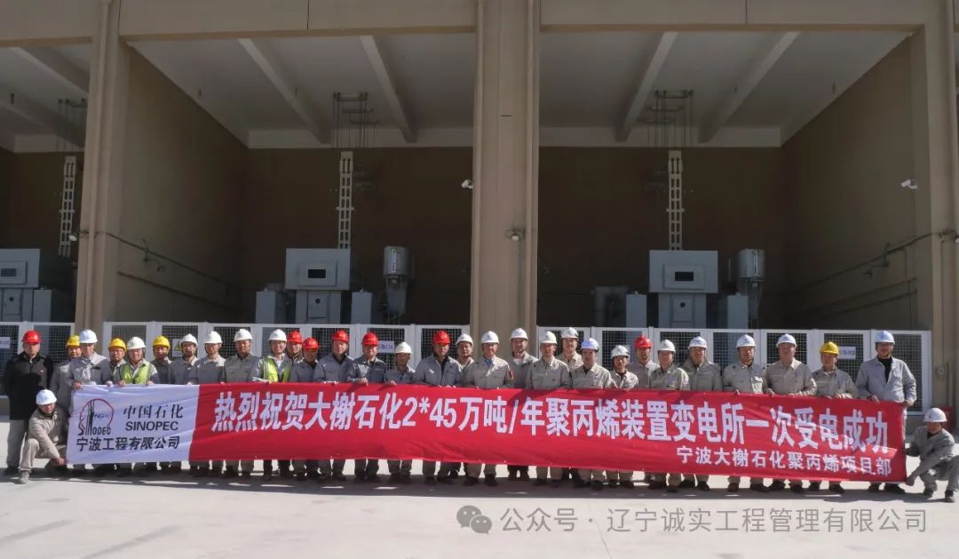 2024年11月28日11时18分,在各参建单位紧密配合下,中海油宁波大榭石化2*45万吨/年聚丙烯装置变电所一次受电成功!为项目后续设备试运行提供了良好的保障!项目部总监理工程师王聪(后排左14)、电气专监石军(后排左1)参加了仪式合影。