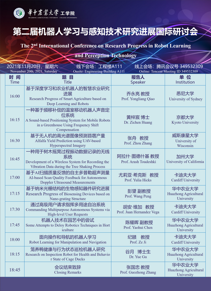 第二届机器人学习与信息感知技术研究进展国际研讨会