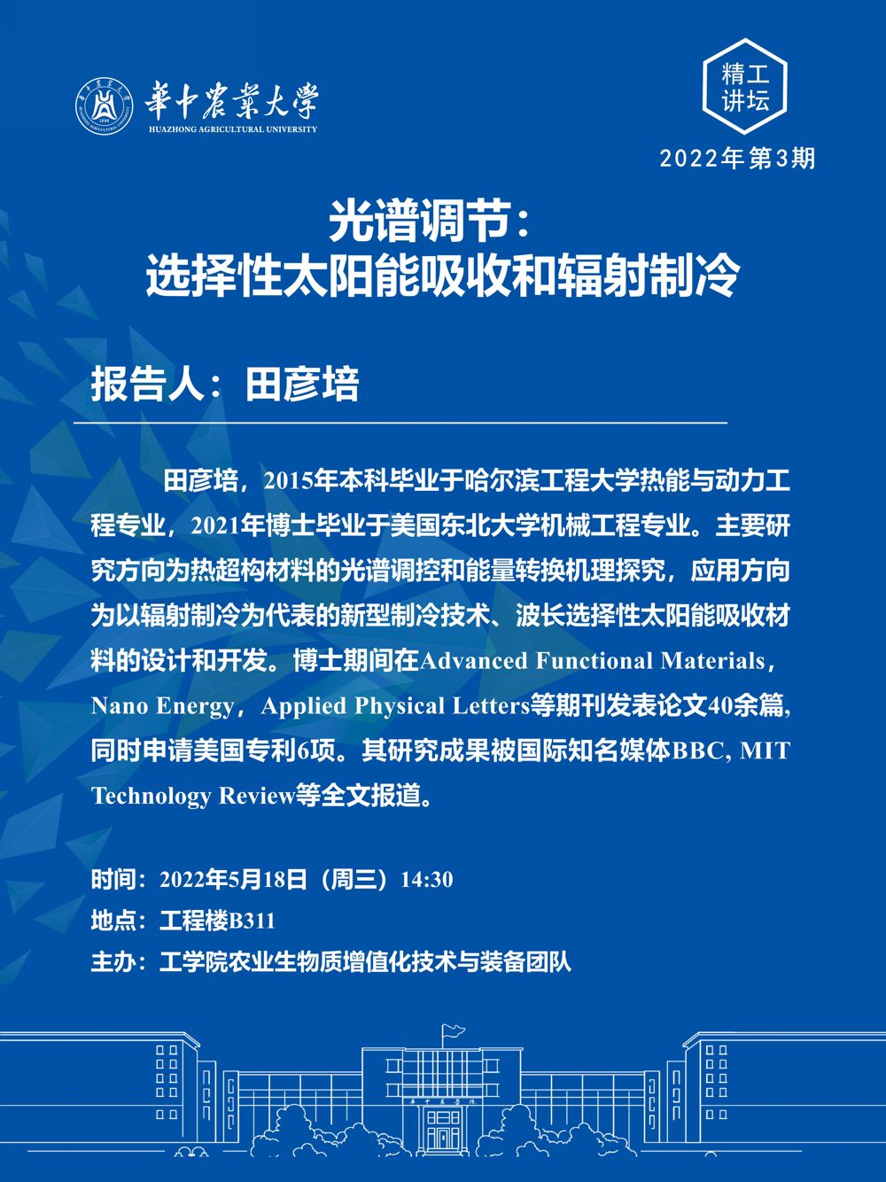 精工讲坛2022年第3期 | 光谱调节:选择性太阳能吸收和辐射制冷