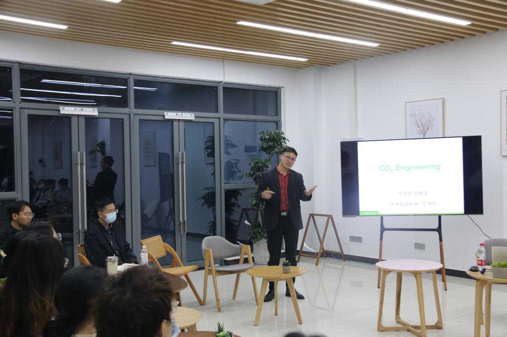 11月18日晚,以“从碳捕集走向绿水青山”为主题的学术晚茶活动在综合楼103举行。jdb电子游戏官方网站副教授贺清尧与50多名同学分享交流碳捕集的相关技术,并结合二十大报告中相关内容探讨了碳达峰碳中和的重要意义。