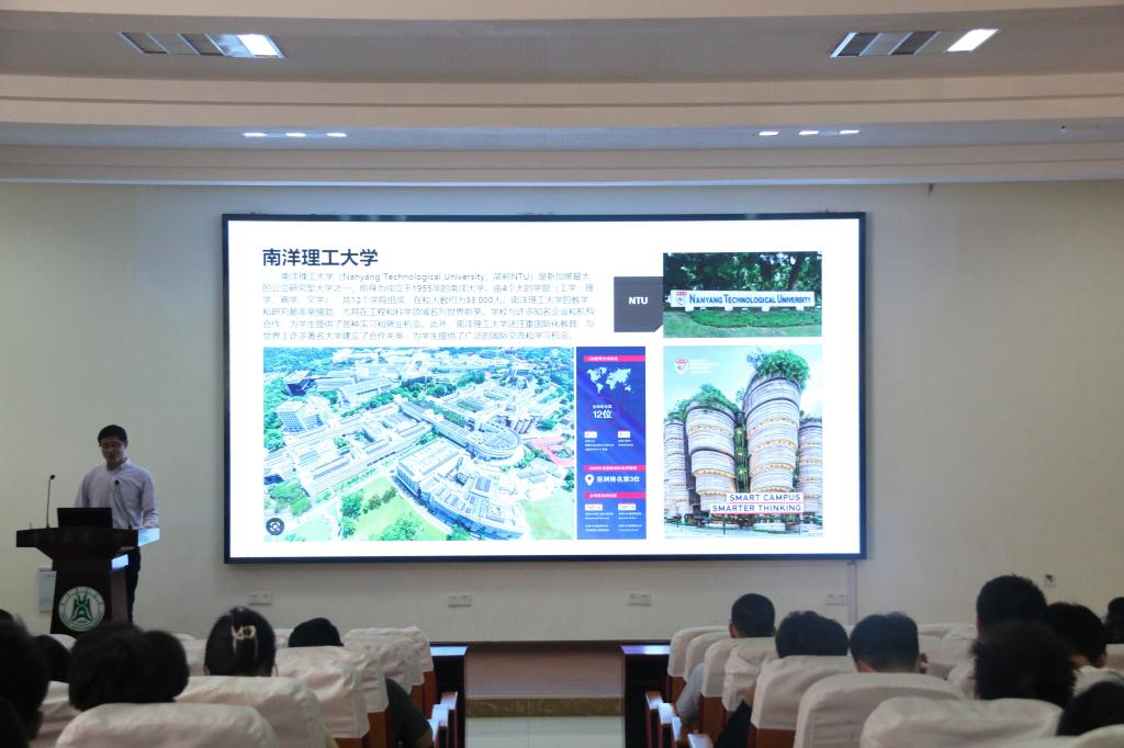 徐勤超鼓励同学们把握当前发展机遇,新加坡为了保持华人的比例,会对国内优秀学子提供全额读书的机会。徐勤超详细介绍了所去的南洋理工大学,“南洋理工大学科研实力强劲,它有很多工程学科排名全球第一,有很多大公司在学校开设实验室,为学生们提供了良好的实操环境。”徐勤超用一幅幅生动的图片为大家展现国外实验室的基本情况,他谈到,课堂上同学们会发表自己的观点进行深入交流,课下学生们积极主动参与科研比赛,拥有良好的学术氛围。