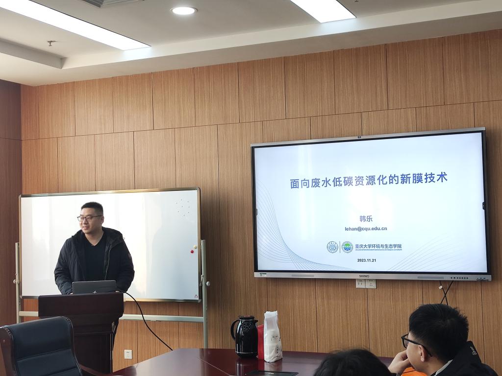 11月21日上午,重庆大学环境与生态学院环境工程系韩乐教授做客jdb电子游戏官网精工讲坛,以“面向废水低碳资源化的新膜技术”为题在新工科楼G320开展学术交流报告,近90名师生参加,会议由jdb电子游戏官网贺清尧副教授主持。