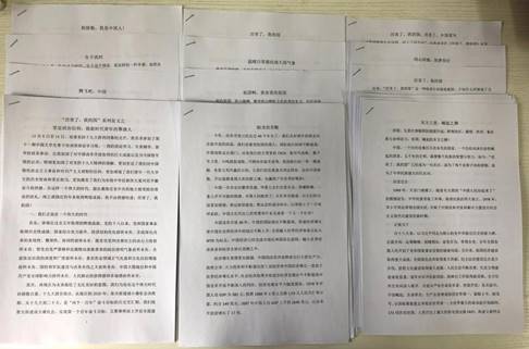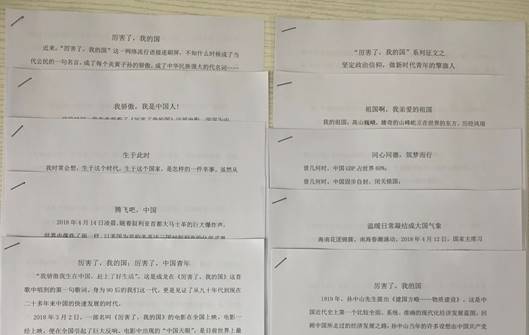 崔秋芳同学以《厉害了,我的国》为题目,通过列举从2008年以来中国所取得的一些成就,感慨国家在中国共产党的领导下一步一步走在世界前列,同时坚信中国的脚步会向着更深远、更广阔的领域迈进。张文良同学以《同心同德,筑梦而行》为题目,文中提到中国桥、中国路、中国车、中国港、中国网,一个个圆梦工程铺展宏图,中华民族实现了从站起来、富起来到强起来的历史性飞跃,激励我们为愈加辉煌的中国,为奋进的中华民族,同心同德,筑梦而行!杨迪同学在《厉害了,我的国;厉害了,中国青年》一文中写到中国的未来需要青年,我们应该抓住在校时光,加强学习,努力站在时代前列,培养国际化的眼光,在时代的洪流中闯出自己的一片天地。