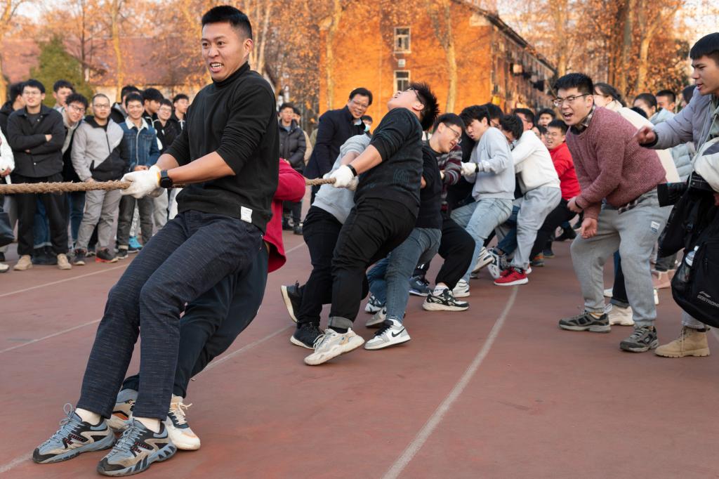 12月30日下午,jdb电子游戏官方网站在西运动场开展“师生融乐”拔河比赛,200余名师生参加比赛。冬阳的温暖和煦与师生的融乐热情让空旷的运动场充满了生机与能量。