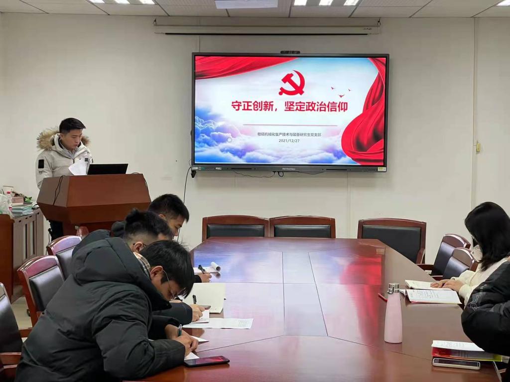 2021年12月27日,为进一步学习十九届六中全会精神,加强党员思想建设,坚定政治信仰,jdb电子游戏官方网站柑橘机械化生产技术与装备研究生党支部在工程楼B311会议室开展“守正创新,坚定政治信仰”主题党日活动,胡边成同志主持该会议。