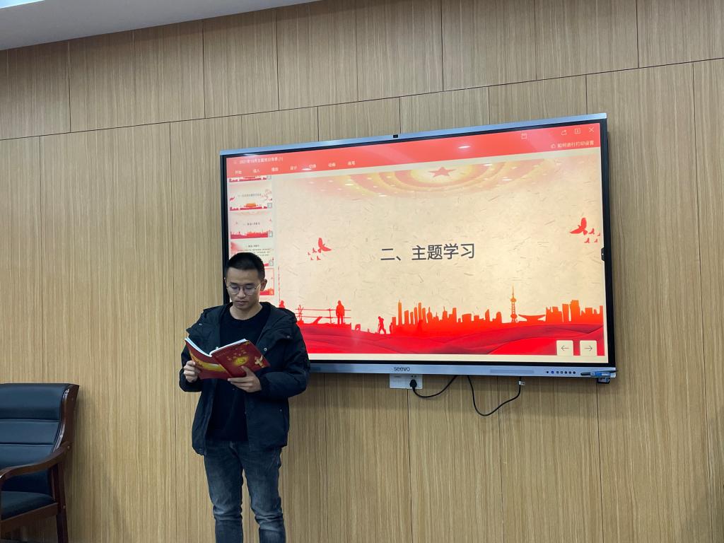 张季钦同志领学《jdb电子游戏官方网站党支部工作细则(2021年修订)》,他重点介绍jdb电子游戏官方网站党组织发展党员的相关规定和流程,并强调,在今后的支部工作中,我们要更加注重理论与实践相结合,在实践中提升理论,让理论更好地服务于实践。