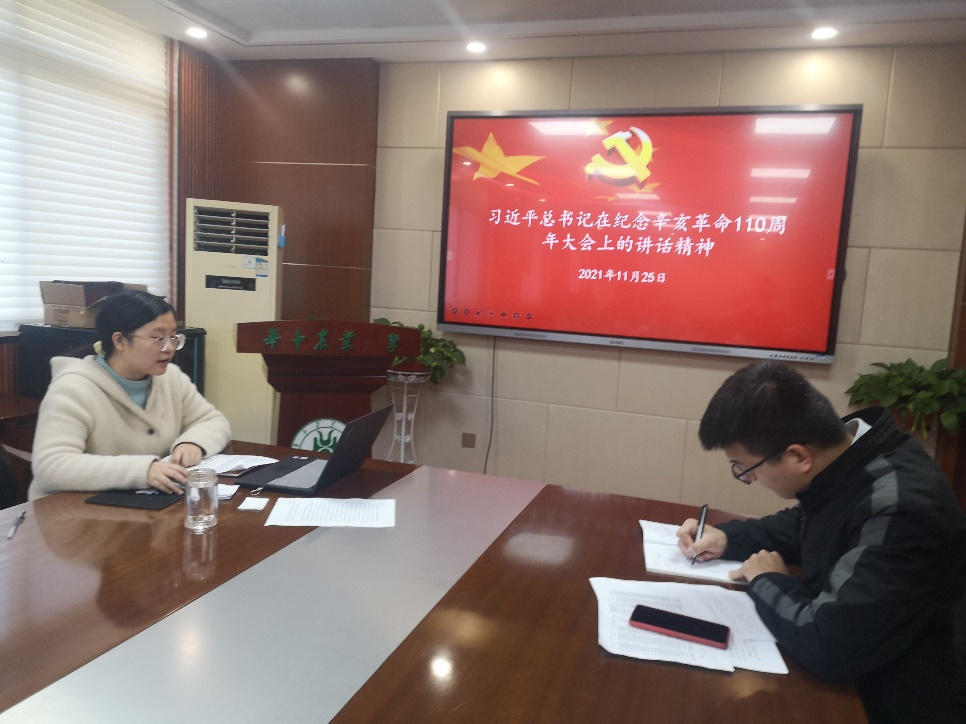 石明菲同志领学习近平总书记在纪念辛亥革命110周年大会上的讲话精神