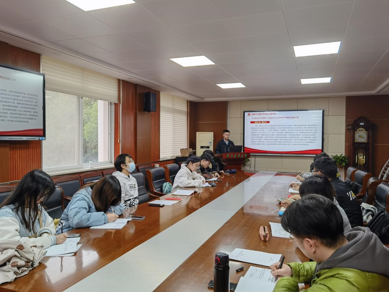 11月21日下午,jdb电子游戏官方网站本科生党支部在工程楼A201会议室召开会议,共同学习党的十九届六中全会精神,会议由党建办副主任牛彦东主持,辅导员周熙老师和各支部支委共同参加此次会议。