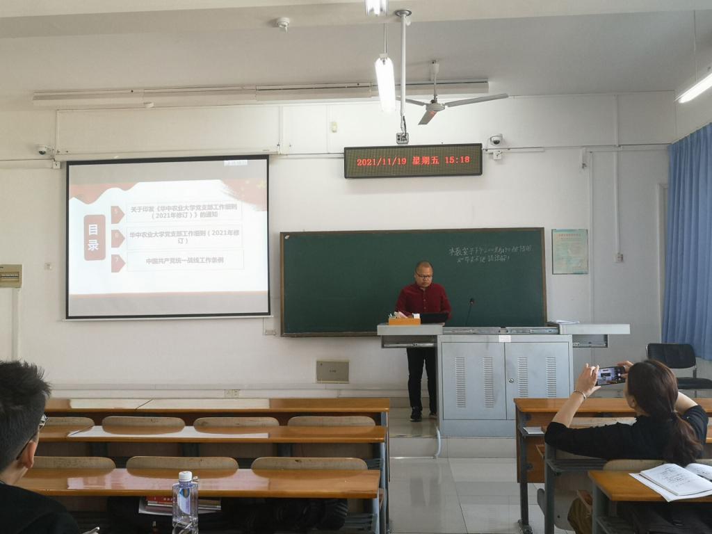 11月19日15:00,jdb电子游戏官方网站实验教工党支部联合机电本科生第二党支部在三教C503开展了11月份主题党日活动。本次活动由于斌同志主持,两个党支部全体党员参加。