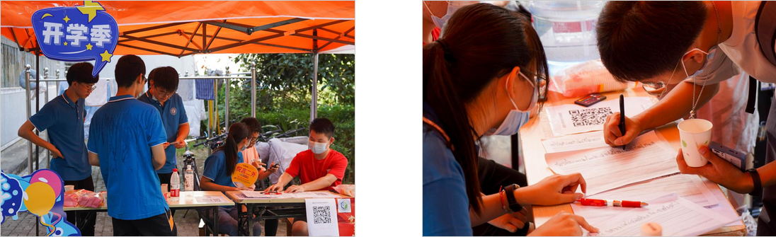 在新生入学当天,jdb电子游戏官方网站分别在博园3栋、荟园2栋、荟园4栋、荟园9栋设立志愿服务岗和党员值班岗,从早上6点到晚上11点轮番值守。身处烈日之下,哪怕早已汗流浃背,学生党员和志愿者们仍然坚持值班,在停车点前帮助新生从车上卸下行李,在校园内进行指引,在宿舍楼下将行李搬运上楼,确保每一位新生都能顺利报到。帮助新生办理入住的同时,志愿者们也积极解答他们的各种问题,包括智慧后勤的使用方法、校园卡如何充值等。同时,为了让新生尽快适应校园环境,志愿者们带领新生前往快递站、食堂等地点,帮助他们熟悉校园,并主动分享自己在华农经历、学习经验等,与新生相谈甚欢。
