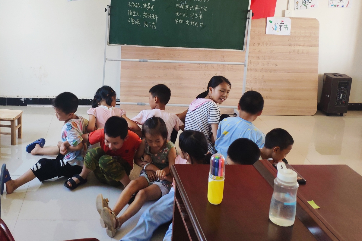 实践队员还举办了儿童作业辅导活动,助力儿童教育,传播社会温情。活动主要面向初中及以下儿童开展,在村委会的大力支持下,有近30个儿童参与其中。活动主要包括暑假作业辅导、心理疏导以及文化活动等,陪伴他们度过一个多彩的假期。