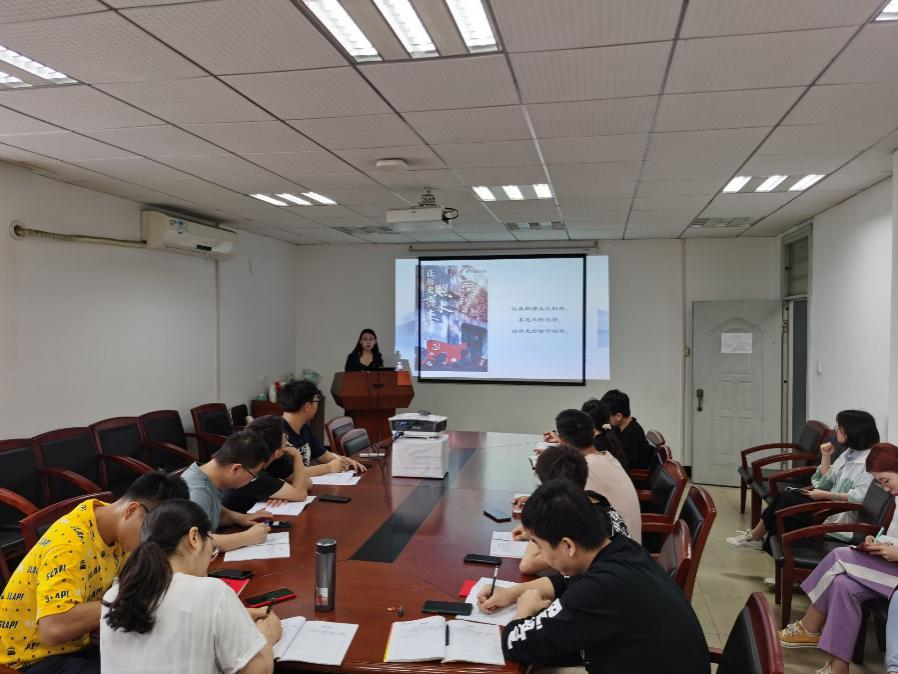活动开始后,全体党员在组织委员刘婷婷带领下重温入党誓词并按期缴纳了当月党费。随后由马克思主义学院的杜彧坤同志带领全体支部成员学习了百年中共党史的光辉历程,杜彧坤同志从1921年党的建立开始讲起一直到这次新冠的疫情,讲述了党波澜壮阔的壮丽史篇,在总结时她讲到:“开展党史学习教育的一个重要目的就是要通过学习党的百年历程坚定理想信念,用党的光荣传统和优良作风砥砺政治信仰,用党的历史经验和伟大成就鼓舞精神斗志,用党的信仰信念和革命精神凝聚力量。”