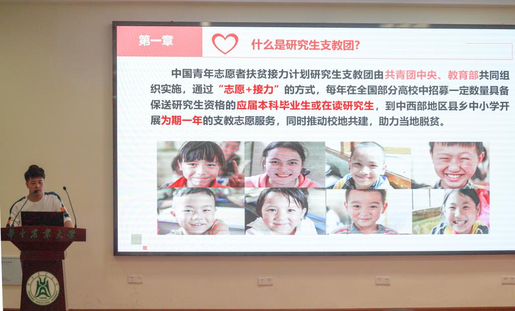 随后,支教团成员、jdb电子游戏官方网站2017级机电专业的胡世灵同学介绍了jdb电子游戏官方网站研究生支教团的起源和发展,向大家说明支教团的相关工作内容和招募政策,并介绍了安钥琦等优秀支教团志愿者代表,呼吁更多有志愿服务志向的本科生参加研究生支教保研项目。