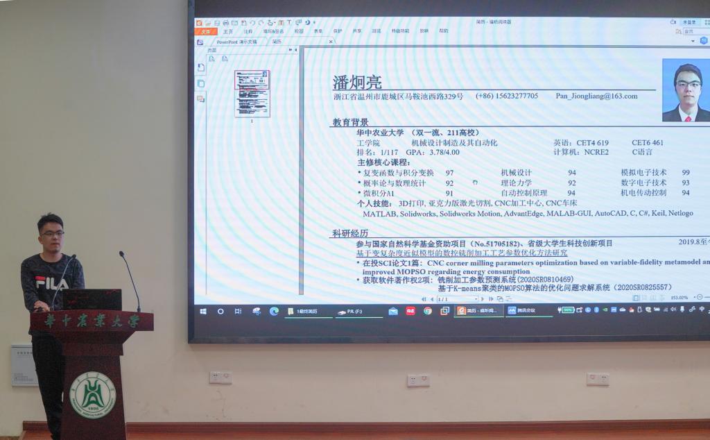紧接着,保研至哈尔滨工业大学深圳校区的机制专业潘炯亮同学,为即将面临保研相关事宜的2018级本科生详细介绍了简历制作心得,以及联系导师时需要注意的相关事项,并分享了一些对保研有帮助的微信公众号。潘炯亮建议,要尽可能将自己的科研经历写在简历诸多内容之前,一定程度让导师在面试时对专业知识的提问减少一些,从而减少面试准备时间;简历的整体设计要简单清爽,不要过分花俏;邮件中语言要礼貌得体,不要过分自信或自卑,简洁明了的表达想法,也要留给自己能够进退的余地。