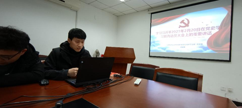 活动开始后,全体党员在组织委员刘婷婷带领下重温了入党誓词,按期缴纳了当月党费。林家豪同志带领大家学习习近平2021年2月20日在党史学习教育动员大会上的重要讲话,林家豪同志讲到习近平总书记20日在党史学习教育动员大会上作出动员和部署,为全党开展好党史学习教育指明了前行方向,作为研究生党员,我们应该积极响应并认真学习。随后,候剑锋同志带领大家学习了习近平总书记在全国脱贫攻坚总结表彰大会上的重要讲话,侯剑锋同志对讲话精神的深刻阐述,使大家议论纷纷,支部成员任宗强表示:习近平总书记在全国脱贫攻坚总结表彰大会上的重要讲话,充分肯定了脱贫攻坚取得的伟大成绩,深刻总结了脱贫攻坚的光辉历程和宝贵经验,深刻阐述了脱贫攻坚伟大斗争锻造形成的脱贫攻坚精神,对巩固拓展脱贫攻坚成果、走中国特色社会主义乡村振兴道路、促进全体人民共同富裕提出了明确要求。