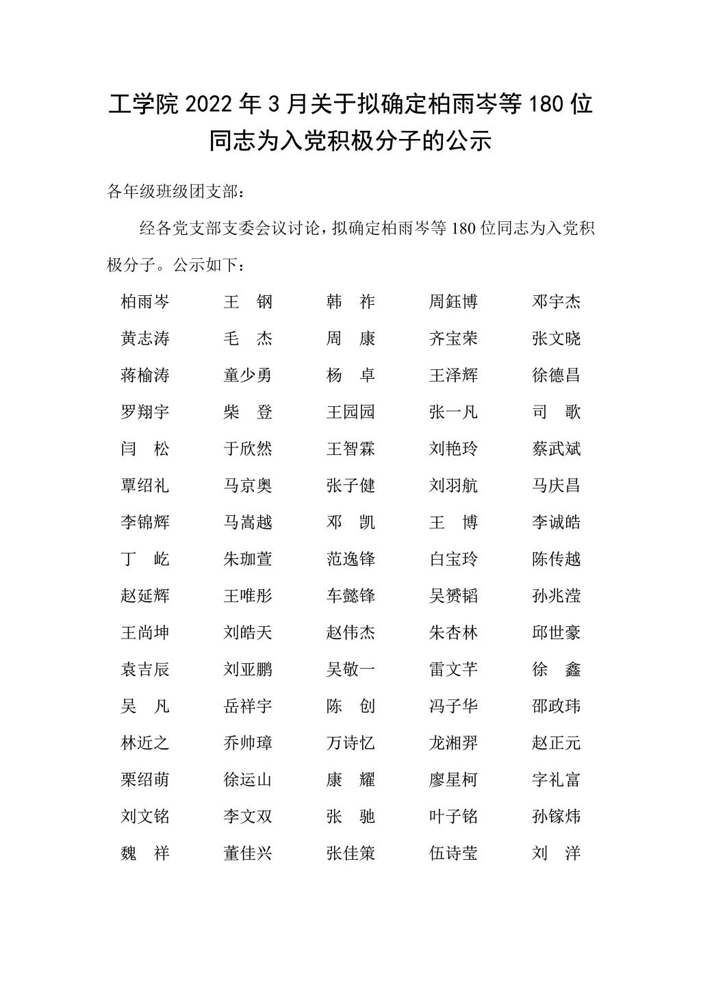 jdb电子游戏官方网站2022年3月关于拟确定柏雨岑等180位同志为入党积极分子的公示