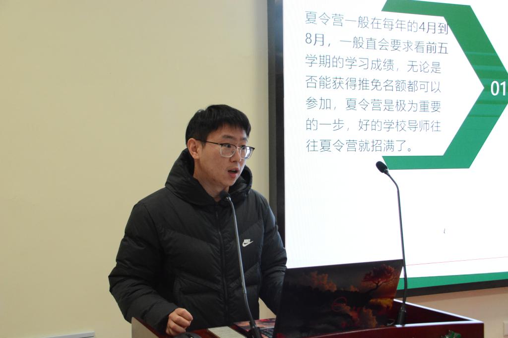 君志所向,一往无前。在保研经验分享会上,杜煜涛重点说明了个人定位对于专业选择的重要意义。杜煜涛讲到:“保研不仅仅可以保本专业的研究生,还可以尝试向其他非本专业的院校投递简历。具体的院校要以自身定位为准则,要选择自己愿意研究并且擅长研究的专业,避免因盲目选择研究生方向给自己的未来增加不确定性。一旦决定了自己心仪且合适的研究生专业,就要坚定地在研究上走下去。”杜煜涛通过自己的保研经历讲述了个人目标对保研专业选择的重要性。