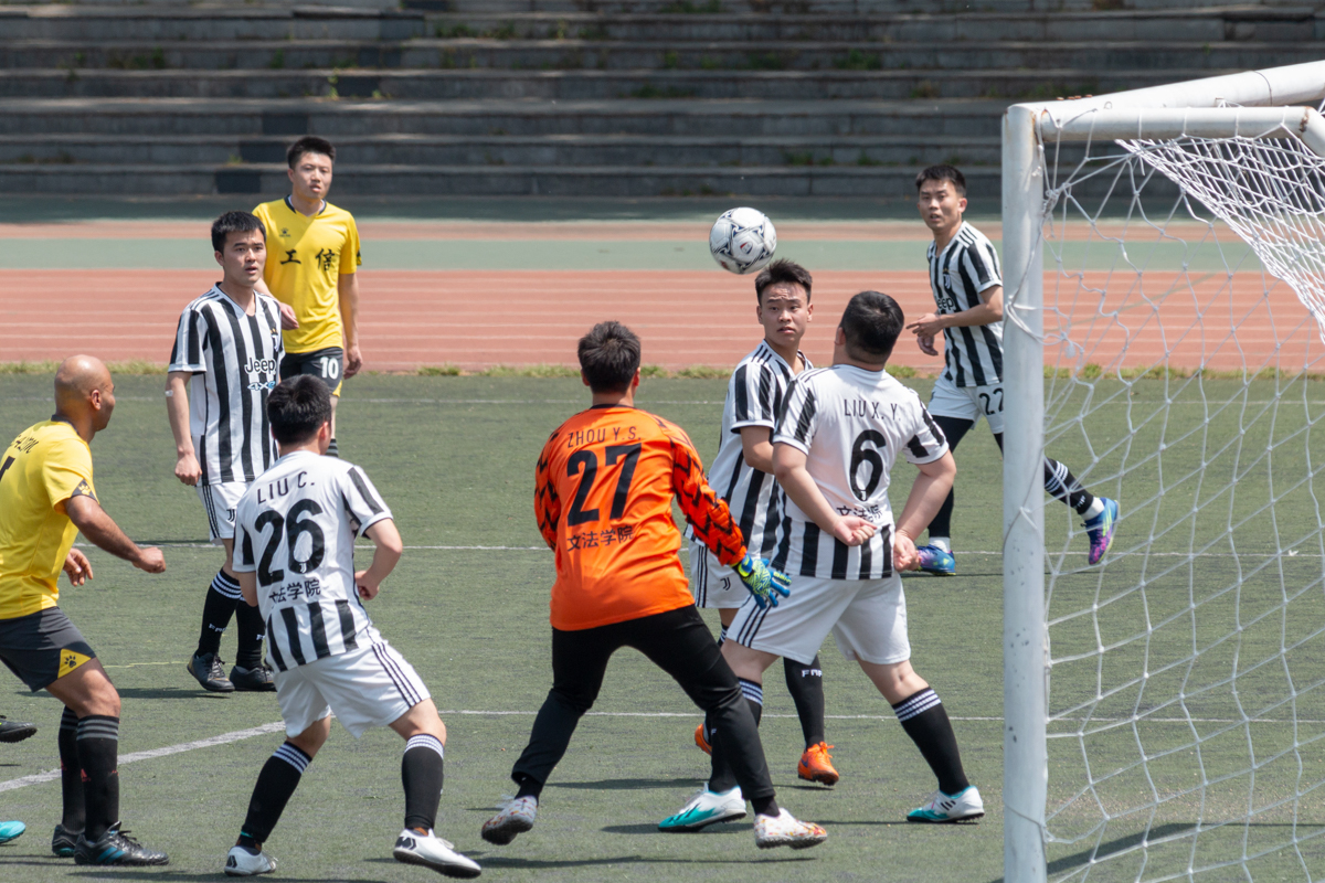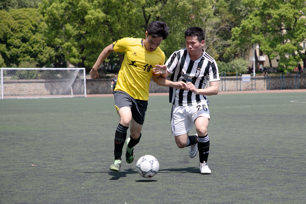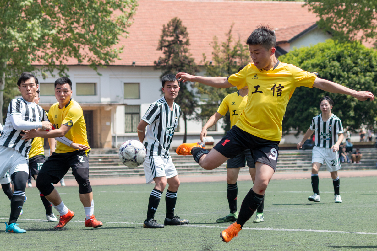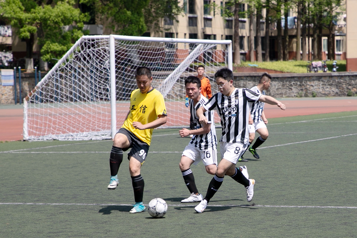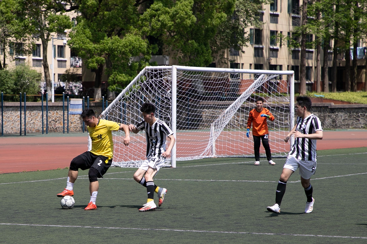4月7日中午,2022“狮子山杯”足球赛(研究生)男足小组赛继续进行。在西运动场一场比赛中,身着黄色球衣的jdb电子游戏官方网站、信息学院联队(工信联队)4:0战胜身着黑白间条衫的文法学院男足,取得开门红。