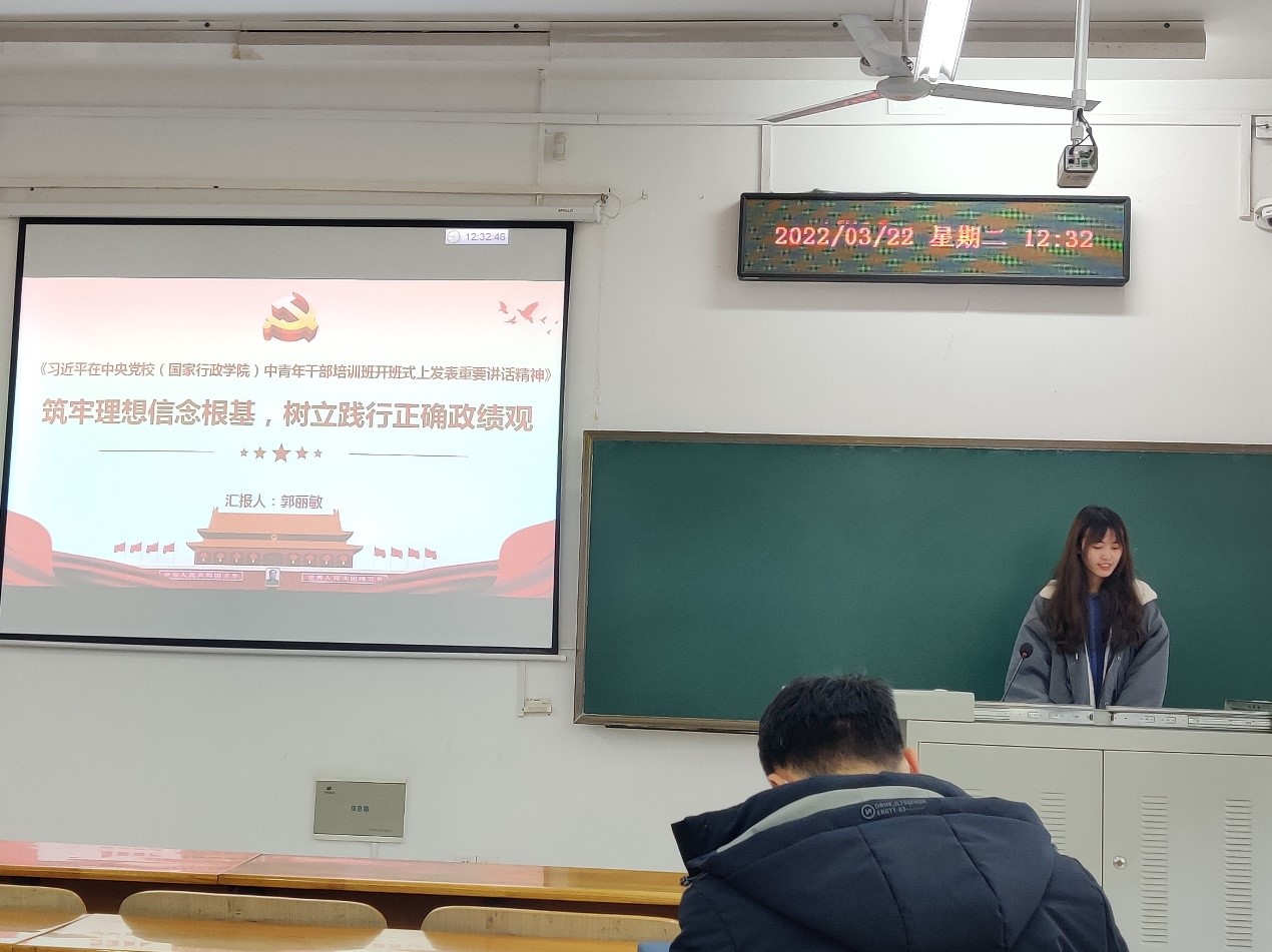 郭丽敏同志领学了《习近平在中央党校(国家行政学院)中青年干部培训班开班式上发表重要讲话精神》,习近平总书记强调,年轻干部是党和国家事业发展的希望,必须筑牢理想信念根基,守住拒腐防变防线,树立和践行正确政绩观,练就过硬本领,发扬担当和斗争精神,贯彻党的群众路线,锤炼对党忠诚的政治品格,树立不负人民的家国情怀,追求高尚纯粹的思想境界,为党和人民事业拼搏奉献,在新时代新征程上留下无悔的奋斗足迹。习近平总书记指出,实现第二个百年奋斗目标,我们要坚持党的基本路线,坚持以经济建设为中心,但在新形势下发展不能穿新鞋走老路,必须完整、准确、全面贯彻新发展理念,加快构建新发展格局,推动高质量发展。业绩都是干出来的,真干才能真出业绩、出真业绩。面对新形势新任务,党员干部一定要真抓实干,务实功、出实招、求实效,善作善成,坚决杜绝口号式、表态式、包装式落实的做法。对当务之急,要立说立行、紧抓快办,不能慢慢吞吞、拖拖拉拉。对长期任务,要保持战略定力和耐心,坚持一张蓝图绘到底,滴水穿石,久久为功。要强化精准思维,做到谋划时统揽大局、操作中细致精当,以绣花功夫把工作做扎实、做到位。
