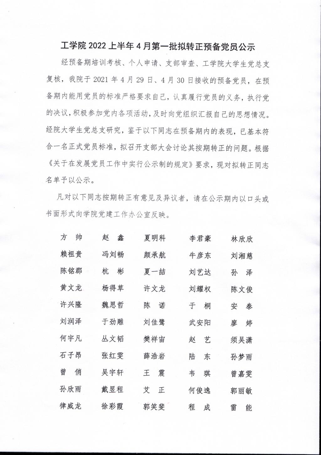 jdb电子游戏官方网站2022上半年4月第一批拟转正本科生预备党员公示