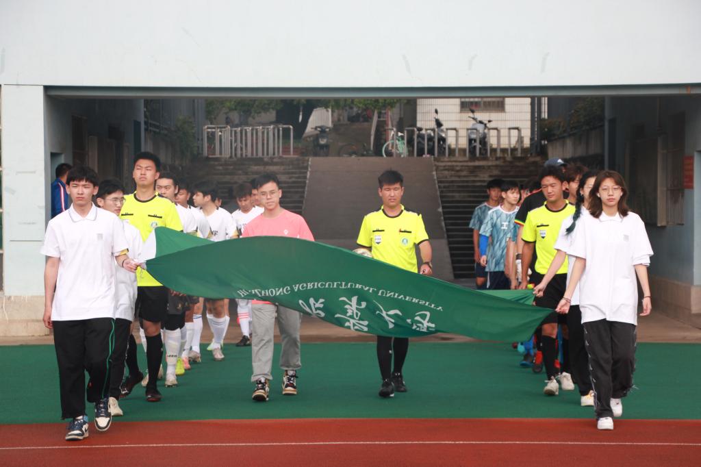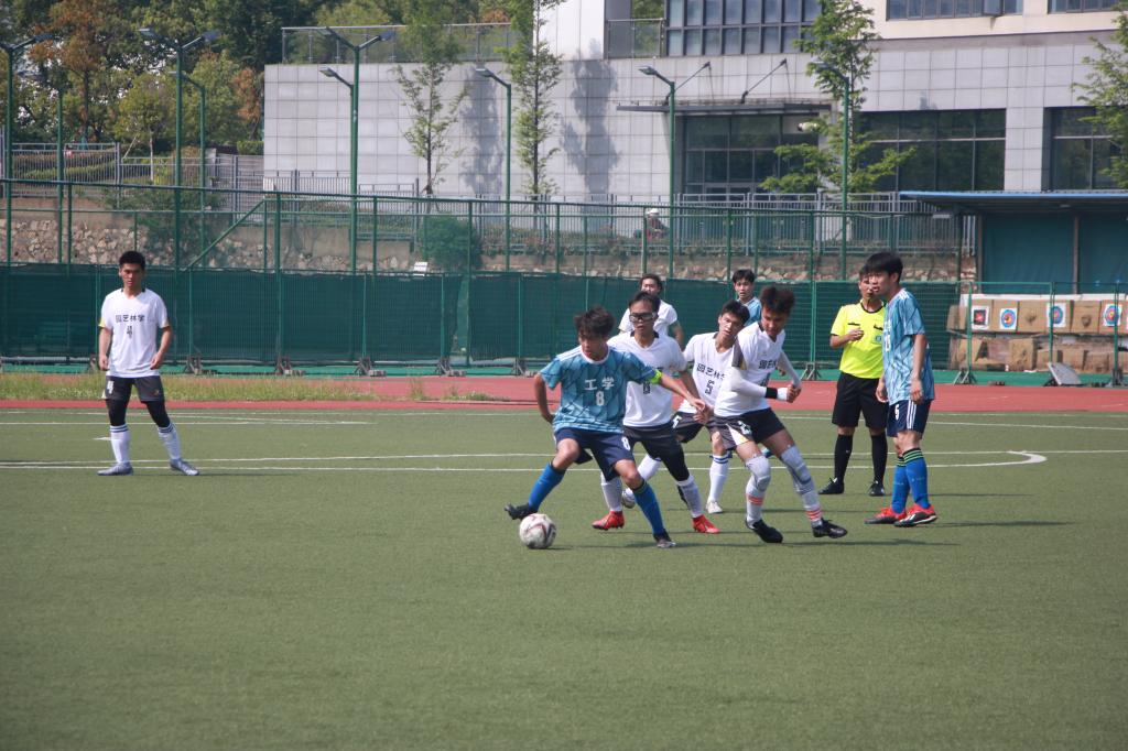4月23日上午,jdb电子游戏官方网站与园艺林学学院的小组对抗赛正式拉开序幕。开场双方体力充沛,你来我往,互不相让,上半场双方便主打进攻节奏,但运气欠佳,不断传球交换球权,比赛一度陷入僵局。上半场过半,园林8号李子涵率先发难,接球后连续晃开两名球员,一记角球直接打门,禁区外围突施冷箭,我方守门员猝不及防,球应声落网,对方先拔头筹。随后双方又经历了几个回合的攻防,结束了上半场比赛。