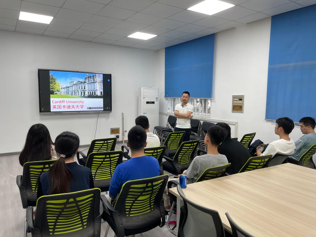 宣讲会上,杨欣为同学们介绍了英国卡迪夫大学的基本情况,展示了卡迪夫大学的校园风光。针对同学们的提问,杨欣向大家介绍了卡迪夫大学与jdb电子游戏官方网站的本硕联培模式与人才培养方案。杨欣表示,卡迪夫大学的学术氛围浓厚、生活环境优美,在半导体、机器人等相关学科领域拥有优秀的导师团队,能够为同学们提供良好的学习科研指导。机电2001班罗翔宇就“3+1”项目向杨老师提问,杨欣向同学们强调了英语学习的重要性,他表示,出国深造的前提是英语能力要过关,同时还要提升自主学习能力、拓宽思维和视野,他为同学们在本科阶段需要提前进行的准备提供了相关意见建议。机制2002班王桐新从个人情况出发,向杨老师提出了自己对国际交流项目存在的困惑,杨老师在鼓励大家的同时,对同学们的交流深造目的及未来发展前景进行了分析,引发了同学们的积极思考和讨论交流。
