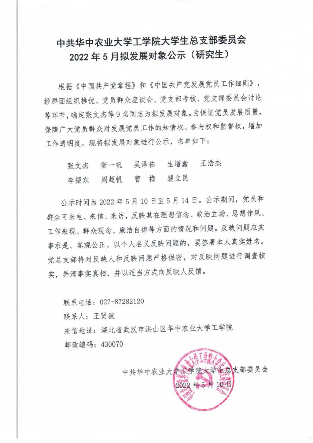【研】中共jdb电子游戏官方网站大学生总支部委员会2022年5月拟发展对象公示(研究生)