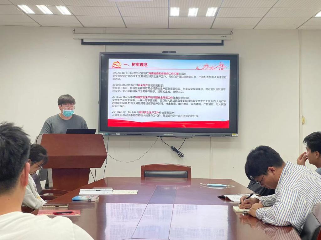 师哲同志在领学习近平总书记关于安全生产的重要论述时带领大家回顾今年三月份的东航客机事件,同时强调安全生产的重要性。他谈到,做好安全生产不是一件易事,需要我们从树牢理念、强化责任、健全体系三个方面同时着手。从学校学院层面来讲,为了做到安全生产,学院近期已经开展了安全隐患排查活动,将实验室安全维护责任落实到具体个人,健全保障生产安全的制度体系;从个人方面来讲,我们每个人都要树牢安全生产这个大旗,为保障我们的人身财产安全做出努力。