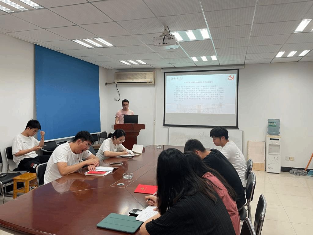 会议开始,徐家威同志领学《习近平总书记致首届全民阅读大会举办的贺信》。在领学过程中,徐家威同志分享到,“书籍是人类进步的阶梯”,我们从小学开始,就不断学习知识,现如今,我们已经迈入更高层次的学习过程中,在我们的学习生涯中,书本时刻伴随着我们,是我们获取知识的重要渠道。我们作为党员同志,要时刻与我们的党中央保持一致,这就要求我们要养成时刻学习的习惯,学习我们党先进的理论知识。除此之外,我们也要培养终生学习的习惯,要沉浸在阅读的快乐中,让书本带领我们在知识的海洋中遨游。希望我们研究生党员同志要有刻苦钻研,敢于创新的精神,在学术上取得一定的收获。
