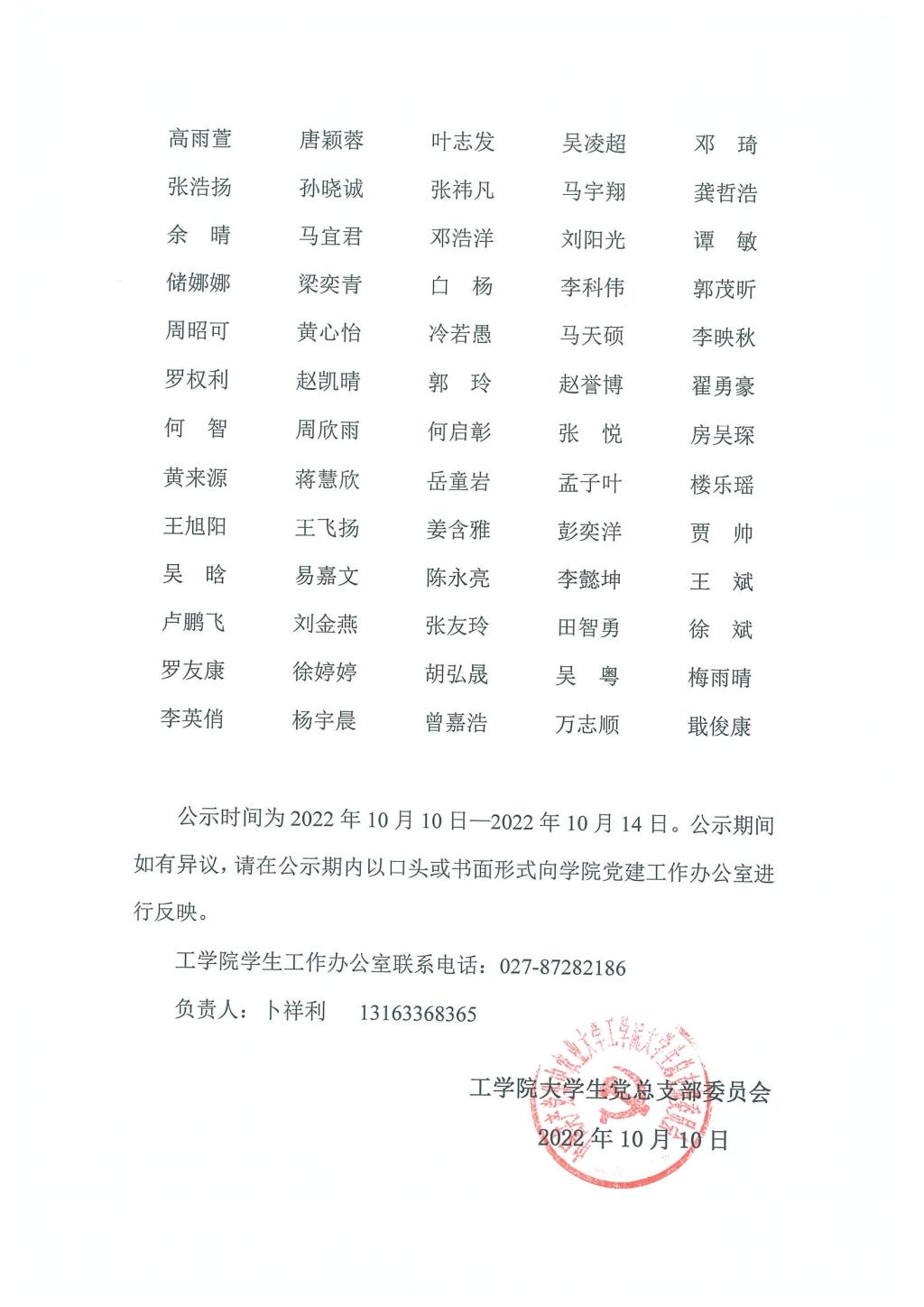 jdb电子游戏官方网站2022年10月关于拟推荐王远航等145位同志为入党积极分子的公示