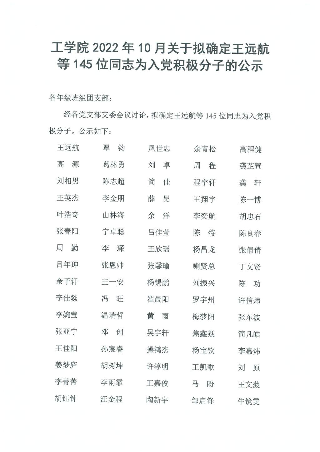jdb电子游戏官方网站2022年10月关于拟确定王远航等145位同志为入党积极分子的公示
