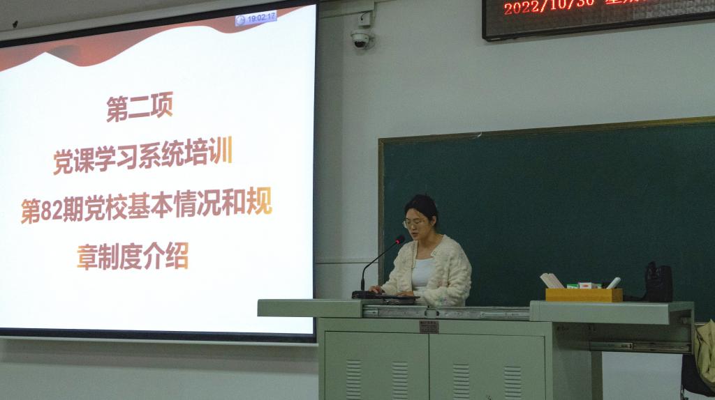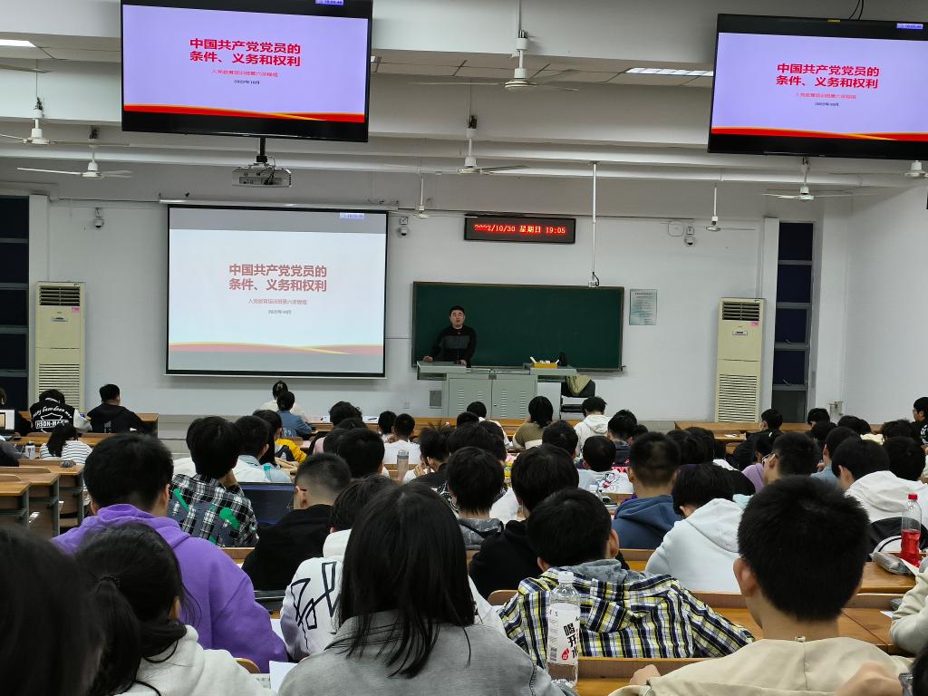 10月30日晚,jdb电子游戏官方网站第82期党校培训班顺利开班。来自2020级、2021级的145名入党积极分子在三教C105教室参加开班仪式,人力资源部周熙老师为入党积极分子们带来了《中国共产党党员的条件、义务和权利》的专题培训。