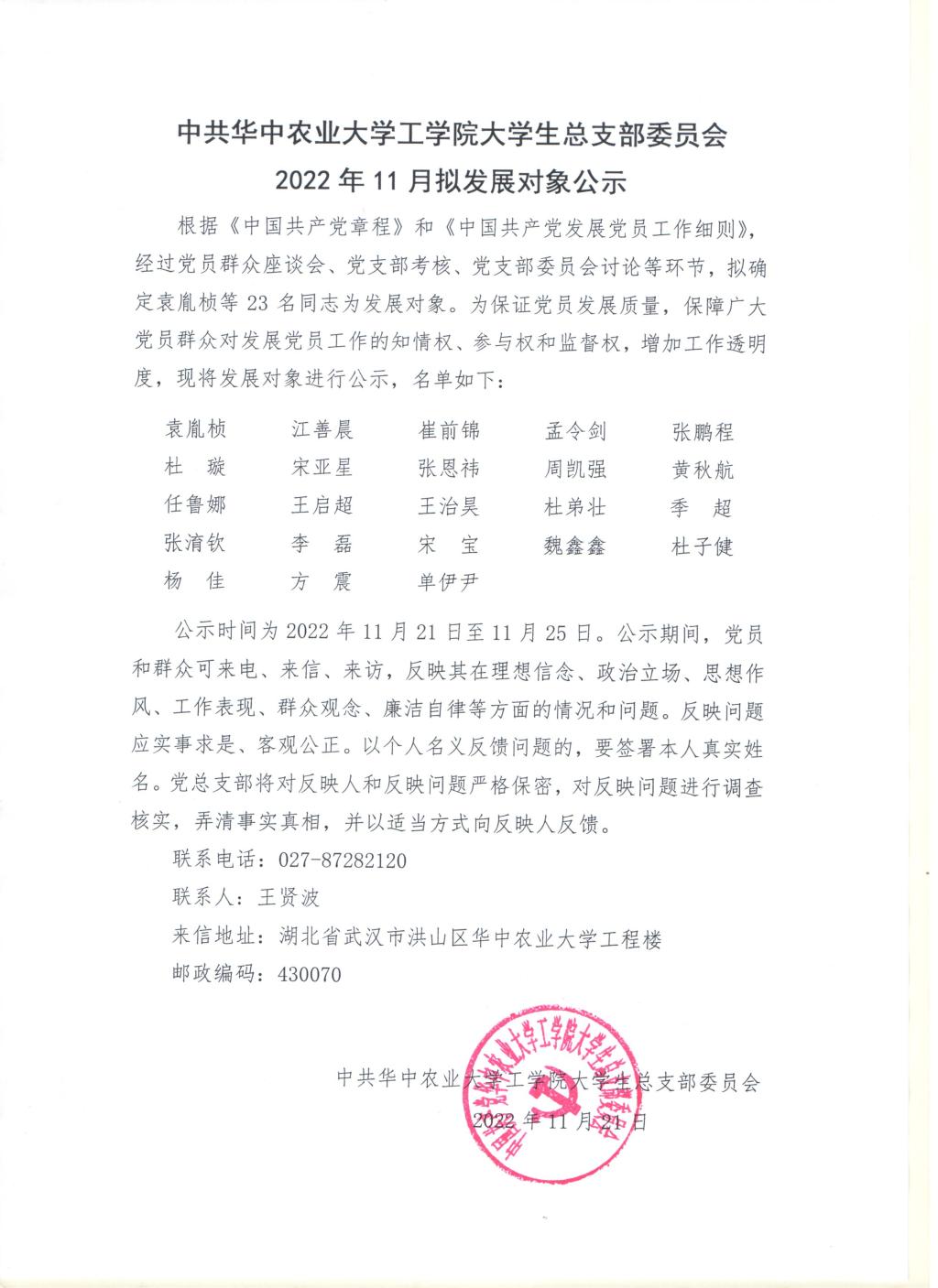 【研】中共jdb电子游戏官方网站大学生总支部委员会2022年11月拟发展对象公示