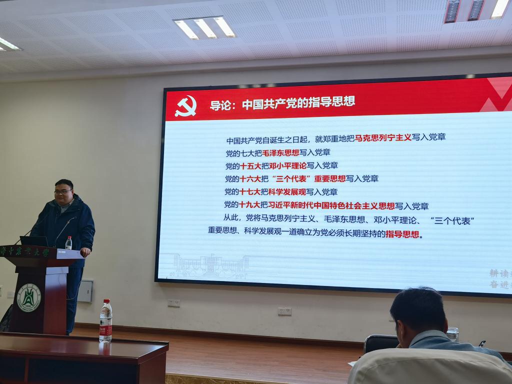 11月20日晚,jdb电子游戏官方网站第82期党校第三次线下党课在工程楼A111举行,由动物科学技术学院、动物医学院辅导员谭力铭老师为党校学员授课。本次课程的主题为“中国共产党的指导思想”。