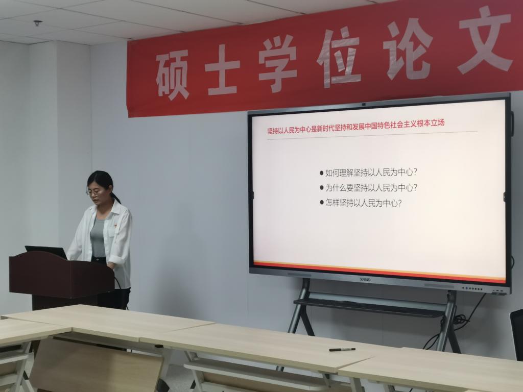 张妍妍同志领学“坚持以人民为中心”相关内容,她谈到,全心全意为人民服务是党的根本宗旨,是每位共产党员应尽的义务,为人民服务没有职位高低之分,也没有能力大小之分,只要心中装着人民,平凡的岗位一样可以创造出伟大的价值。