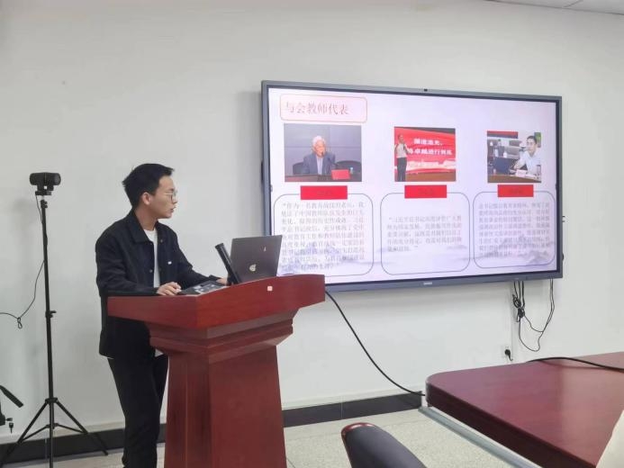 李复帅同志领学习近平总书记教师节重要指示精神。他以全国教书育人楷模为例,谈到“树立‘躬耕教坛、强国有我’的志向和抱负”,身为新时代青年,我们应当接好时代的接力棒,做好新时代的的建设者和接班人,将“强国有我”牢记于心,为实现社会主义现代化奉献青春力量。