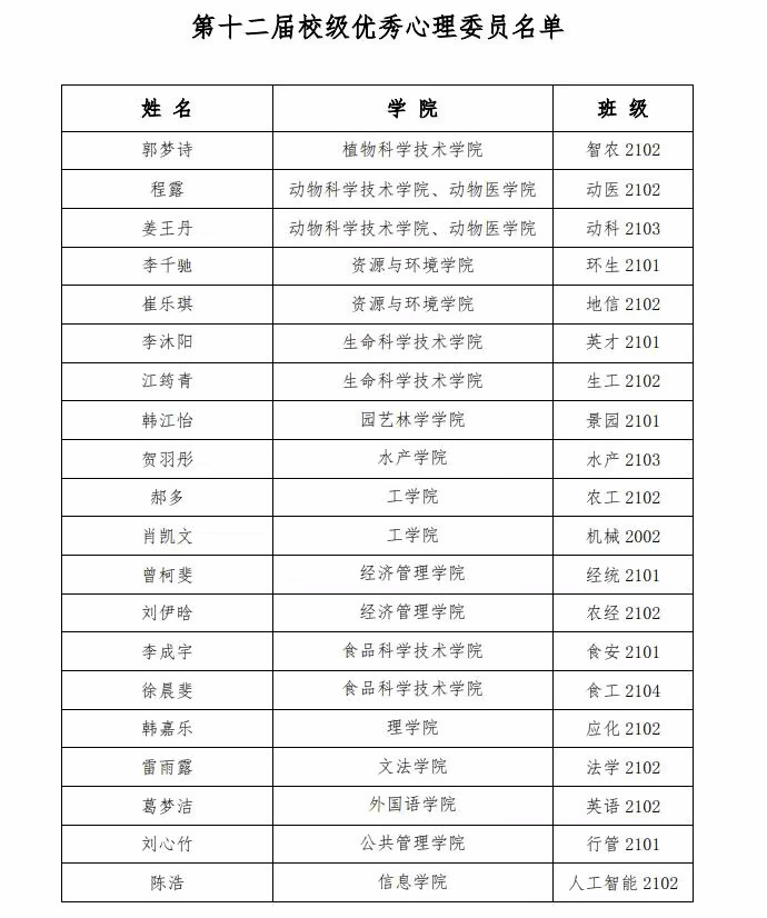 5月30日,学校发布通知,经个人申请、学院推荐、学校集体评议,jdb电子游戏官网机械2002班肖凯文、农工2102班郝多荣获“jdb电子游戏官方网站第十二届校级优秀心理委员”荣誉称号。