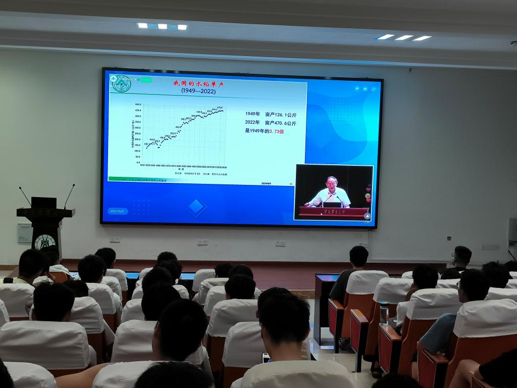 农业机械化工程专业研究生新生舒鑫:“罗院士详细介绍了水稻全程机械化技术的发展历程,回顾过往,立足当下,展望未来,基于水稻无人农场建设,为我们描绘了现代农业生产新图景。较为成熟的水稻智能化机械生产方式,为我思考其它作物机械化生产和机器研发提供了方向和思路,也更加坚定了我对国家农业机械事业发展的信心。”