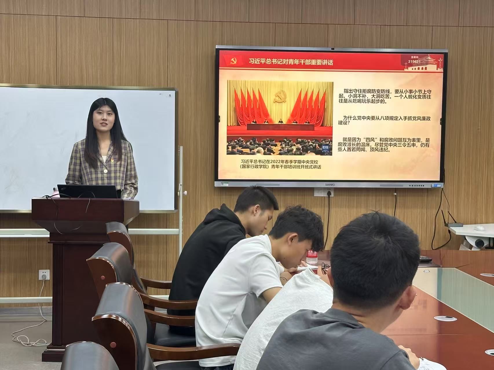 5月15日晚上,jdb电子游戏官方网站油菜机械化生产技术与装备研究生第一党支部于新工科楼G330开展“把牢听党话跟党走青春航向,在中国式现代化建设中挺膺担当”主题党日活动,旨在深入贯彻中央八项规定精神学习教育,引领全体党员以更高标准、更严要求、更实作风推动支部建设,以青春作为助力中国式现代化建设。