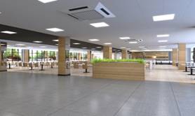 盥洗室、阳台,并配备了实木家具、格力空调、阿里斯 可容纳千人就餐的员工餐厅