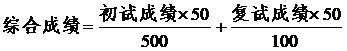 综合成绩:评定采用百分制,其中初试成绩占50%,复试成绩占50%,按下列公式计算综合成绩:
