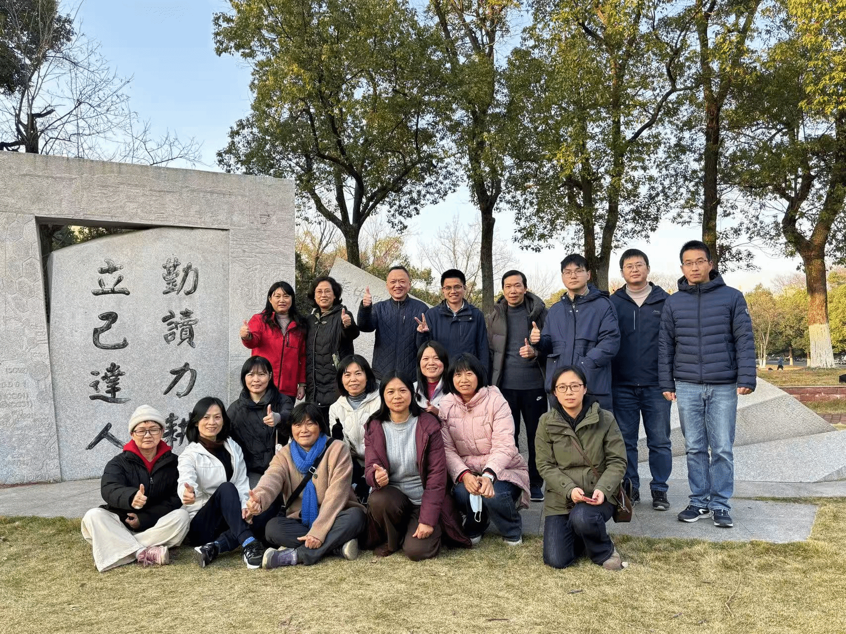 下午4点20分,工程楼前已是一片热闹景象。老师们早早集结,三三两两聊着天,脸上满是期待。这次活动策划的初衷既想让大家在繁忙的教学科研间隙松松劲、透透气,也是对“勤读力耕”校训精神的一次践行。随着活动开始,老师们迈着轻快的步伐,有序出发,开启了这场轻松愉快的校园徒步之旅。
