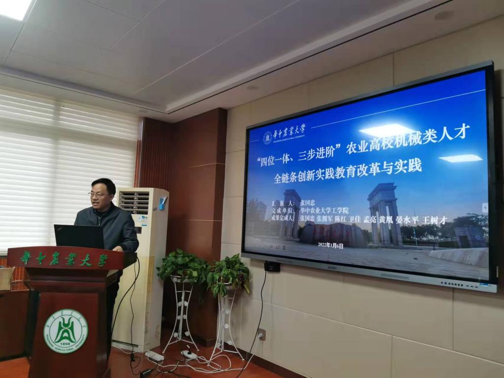 鉴定会上,《基于多学科交叉融合的农林院校农业工程人才培养模式探索与实践》和《“四位一体、三步进阶”农业高校机械类人才全链条创新实践教育改革与实践》两项教学成果负责人廖庆喜教授、张国忠教授分别从成果主要内容、主要解决的问题与方法、成果创新点及成果推广应用情况等方面进行了汇报,专家组在听取项目负责人汇报、审阅相关资料的基础上对两项教学成果进行了认真细致的评议。专家一致肯定了两项教学成果,认为教学成果工作扎实、成效显著,同时希望进一步强化特色、加强推广,并建议根据湖北省教学成果奖申报要求认真准备申报材料。