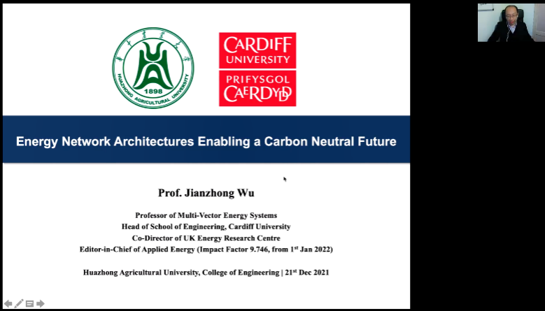 21日,卡迪夫大学工程学院院长吴建中教授作题为“实现碳中和的未来能源网络架构”的学术报告。会议开始,他向华农jdb电子游戏官方网站师生表示感谢,并就自身科研项目概况、卡迪夫大学及两校人才交流合作项目基本情况作介绍。报告内容分为研究背景、未来能源场景、能源网络体系结构、总结四个部分。他提到,回顾历史,人类对于能源的需求在近百年来飞速增长,我们现阶段正处于有限的传统能源和持续增长的能源消费的困境当中,吴建中表示,在未来的时间内,能源问题都将是充满挑战和机会且对人类影响深远的重大研究领域。
