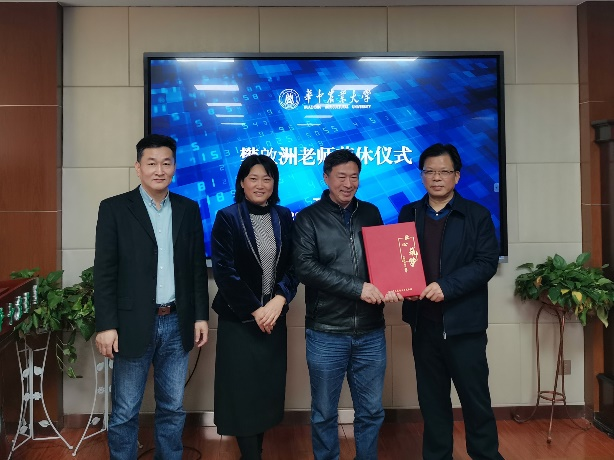 学院领导为樊啟洲老师颁发纪念牌及纪念相册